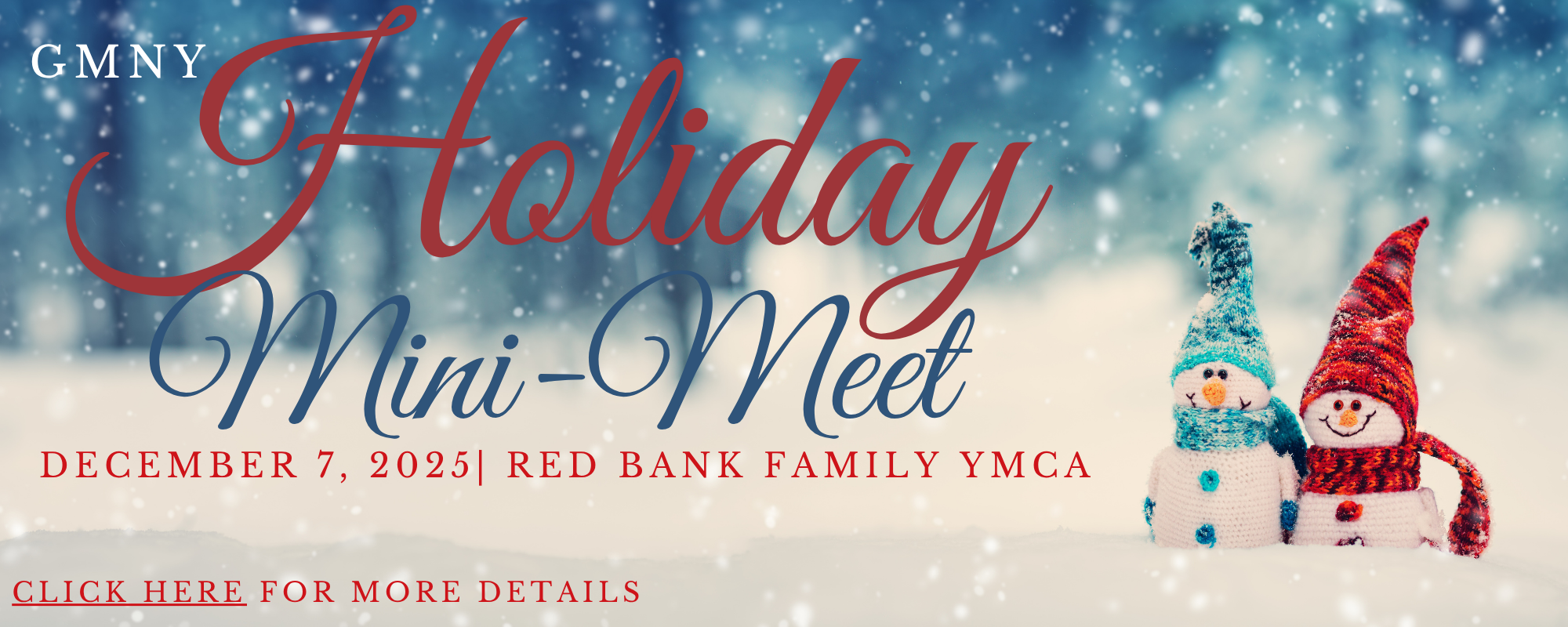 The GMNY Holiday Mini Meet will be held on December 7, 2025 @ the Red Bank YMCA. This event is for swimmers 10 and under. CLICK HERE for more details.