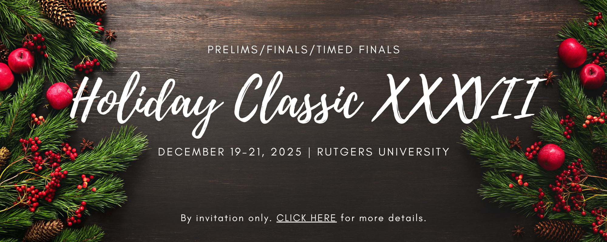 The EEX Holiday Classic will be held on December 19-21, 2025 @ the Sonny Werblin Recreation Center @ Rutgers University. Qualifying times are required. The meet is invitation only and swimmers must have an active USA Swimming membership to compete. CLICK HERE for more details.
